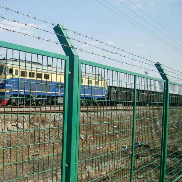 坪、動(dòng)物園、池湖、道路、及住宅區(qū)的隔離與防護(hù)。鐵路防護(hù)柵欄選擇低碳鋼絲,編焊而成;網(wǎng)格結(jié)構(gòu)簡(jiǎn)練、便于運(yùn)輸、安裝不受地形起伏