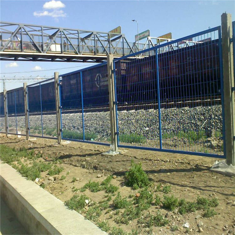 3、鐵路護(hù)欄網(wǎng)的規(guī)格材質(zhì):195低碳冷拔鋼絲。 4、護(hù)欄的立柱采用混凝土澆筑件,工程造價(jià)低。