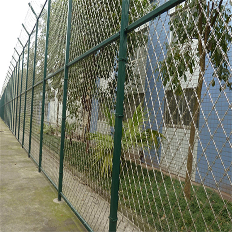 監(jiān)獄防護網(wǎng)可平地安裝,也可在圍墻上二次安裝,有效防止攀逃。直刺式刺網(wǎng)隔離帶,是用柱體和普通刺繩橫、縱、斜向交叉綁定成刺網(wǎng)隔離帶。主要用于特殊地帶、軍事基地圈護、溝壕圈護,安裝簡易,經(jīng)濟耐用。