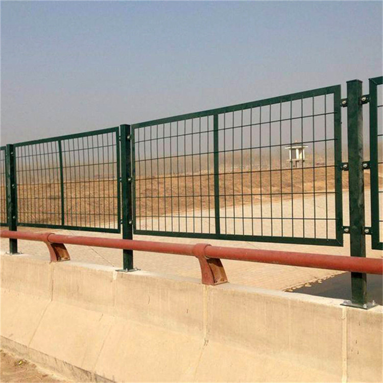 橋梁護欄網具有組裝靈活、用途廣泛的特點。它主要采用盤條作為原料,經由鍍鋅,pvc包塑的網面,具有日久抗腐蝕,抗紫外線的特性。包塑厚度可達到1.0mm以上。網面具有較強的抗沖擊力。網邊一般有勾邊和擰邊兩種。用于中國的公路、鐵路、高速公路等;既可以制作成網墻,又可以作為臨時隔離網使用,只需采用不同的立柱固定方式便可實現(xiàn)。在桃型柱護欄網生產完以后,所有部件都要經除銹、打磨、鈍化、硫化等工藝后,采用鍍塑處理,色彩為果綠色,鍍層厚度為0.5~0.6mm,鍍粉采用抗老化性能較佳的進口耐候性樹脂粉料,鍍層必須顏色一致,表面光滑,不允許有流掛、滴瘤或多余結塊。鍍件表面應無漏鍍、露鐵等缺陷。所謂:框架護欄網又稱為“框架隔離柵”,它是把金屬網(或鋼板網、刺鐵絲)繃緊在支撐結構上的柵欄。用于阻止人、畜進入公路或其他禁入區(qū)域,防止非法占用公路用地的設施,以保證道路使用者的快速、便捷和安全。護欄的立柱:通??蛇x擇普通圓管,蘑菇型異性管,頂端蓋有塑料蓋或防雨帽。表面處理為鍍鋅和噴涂,也可以任選一種。安裝配件:網片和立柱靠螺絲和各種特殊的金屬卡子或者使用綁絲連接的。所用的螺絲均為自動防盜的。所用配件也可以按照客戶的餓不同要求來具體設計。