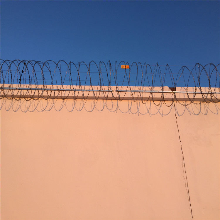 圍墻刀刺網(wǎng)根據(jù)形狀可分為:螺旋式-刀片刺網(wǎng)、交叉式-刀刺網(wǎng)、平板式-刀片刺網(wǎng)、直線式-刀片刺網(wǎng)。被廣泛應用在監(jiān)獄,機場,軍事基地等高安全場所。