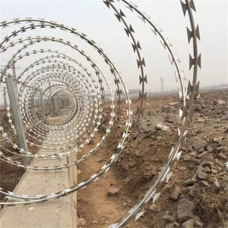 較后,刺絲滾籠的下緣距離鋼筋混凝土防護欄上緣的垂直距離應為5厘米。 刺絲滾籠不僅可以用在高鐵的防護上,對于倉庫、監(jiān)獄和軍事區(qū)等重要的封鎖場所也有重要的防護作用。對于社會的發(fā)展有著一定的重要性。