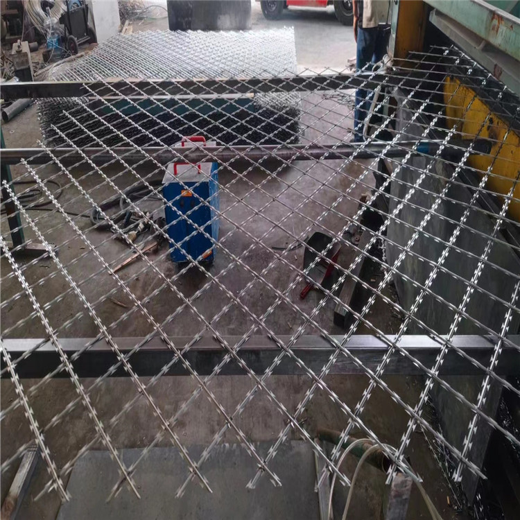 主要是由熱鍍鋅鋼板或不銹鋼薄板沖壓而成的,它擁有尖銳的刀片,高張力鍍鋅鋼絲或者不銹鋼絲做芯線組合而成的產(chǎn)品。由于刺網(wǎng)的形狀很特別,而且每個(gè)角度都有尖狀刀片,因而能達(dá)到極好的防御保護(hù)效果。產(chǎn)品具有結(jié)構(gòu)新穎、堅(jiān)固緊密、網(wǎng)面平整、網(wǎng)孔均勻、刀鋒銳利、防攀爬、抗腐蝕性強(qiáng)等特點(diǎn)。建設(shè)于監(jiān)獄的內(nèi)外墻地面及高墻之上,網(wǎng)墻內(nèi)側(cè)或頂部加裝蛇腹形刀刺網(wǎng),形成一道高不可攀、難以逾越的隔離障礙。