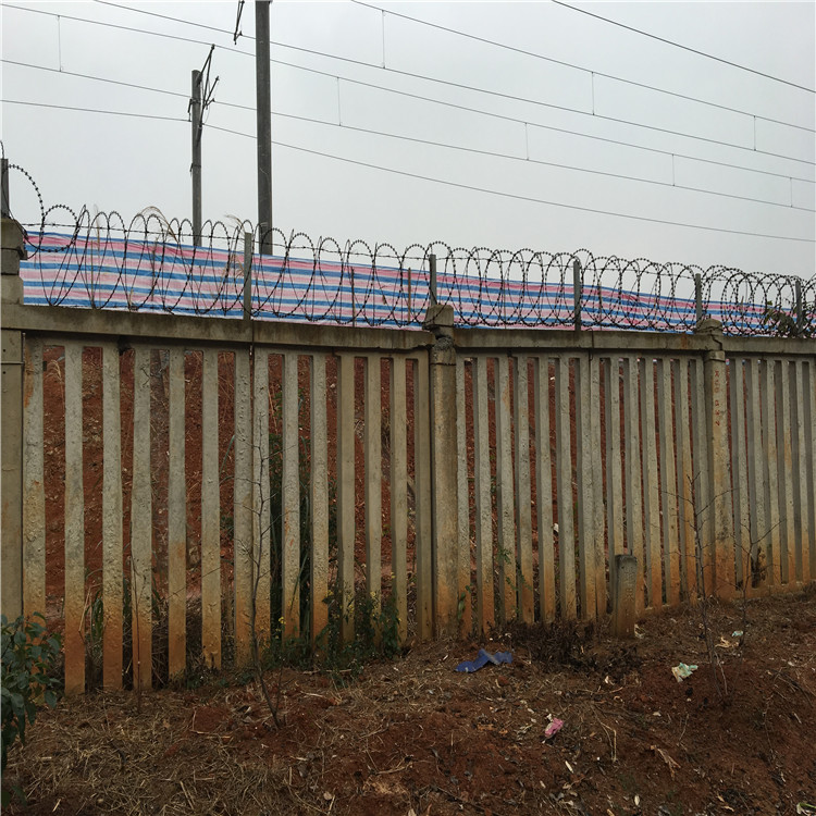 2、高鐵刺絲滾籠安裝前提是,鐵路線路的水泥防護(hù)柵欄安裝完畢時即可開始安裝高鐵刺絲滾籠,一般在水泥防護(hù)柵欄的基礎(chǔ)上加高0.5米的高鐵刺絲滾籠以增強(qiáng)防護(hù)能力。一般刺絲滾籠先安裝支架和加密支架后開始縱向拉筋和刺絲滾籠的安裝。安裝時需帶防割手套以防止手被割傷。