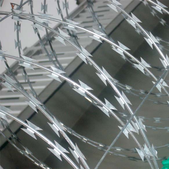 監(jiān)獄防逃脫隔離網(wǎng)[防爬網(wǎng)]又稱作監(jiān)獄安全防御網(wǎng),監(jiān)獄防逃脫隔離網(wǎng)的刀片刺網(wǎng)主要是由:熱鍍鋅鋼板或不銹鋼薄板沖壓而成的,它是擁有尖銳的刀片,高張力鍍鋅鋼絲或者不銹鋼絲做芯線組合而成的產(chǎn)品。由于刺網(wǎng)的形狀很特別,而且每個(gè)角度都有尖狀刀片,因而能達(dá)到極好的防御保護(hù)效果。產(chǎn)品具有結(jié)構(gòu)新穎、堅(jiān)固緊密、網(wǎng)面平整、網(wǎng)孔均勻、刀鋒銳利、防攀爬、抗腐蝕性強(qiáng)等特點(diǎn)。建設(shè)于監(jiān)獄的內(nèi)外墻地面及高墻之上,網(wǎng)墻內(nèi)側(cè)或頂部加裝蛇腹形刀刺網(wǎng),形成一道高不可攀、難以逾越的隔離障礙。