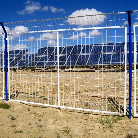 光伏發(fā)電、太陽能發(fā)電是近幾年逐漸興起并快速發(fā)展的清潔能源發(fā)電站、發(fā)電場,為了更好的接受陽光的照射,這些場地一般設(shè)在比較開闊的山坡、斜坡等空地上。這樣一來,就需要有隔離網(wǎng)、防爬網(wǎng)、鐵絲網(wǎng)、護欄網(wǎng)、圍欄等對發(fā)電站、發(fā)電場地進行防護隔離,進一步保障光伏發(fā)電設(shè)備的正常運轉(zhuǎn)。