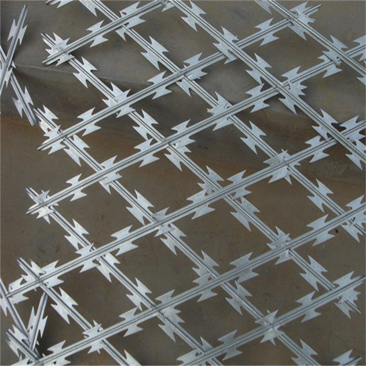焊接刀片防護網產品介紹:熱鍍鋅鋼板或不銹鋼薄板沖壓出尖銳的刀片狀,高張力鍍鋅鋼絲或者不銹鋼絲做芯線組合而成的阻絕器材。由于刺網造形獨特不易觸摸,因而能達到很好的防護隔離效果。產品的主要材質有鍍鋅板和不銹鋼。