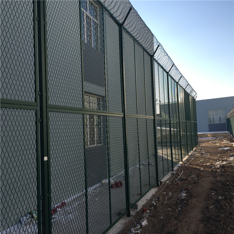 監(jiān)獄隔離網具有美觀、實用、方便運輸和安裝的特點,可以隨時根據(jù)現(xiàn)場地形做上下起伏相應調整,四周焊接邊框使強度和美感顯著增加,所以近年來,被廣泛應用在監(jiān)獄,軍事基地等高安全場所。(注:如果在監(jiān)獄護欄網頂部加裝刀片刺絲、刀片刺繩后又很好的增強了安全防護性能。)